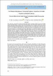 This study was conducted to examine the relationship between university students' awareness of health tourism and health literacy. A total of 906 university students who were foreign nationals and Turkish citizens participated in this descriptive study. Personal Information Form, Health Literacy Scale (HLS-14), Health Tourism Awareness Scale (HTAS) were applied face to face to the participants. In the study, HLS total score was 54,05±10,52 and the HTAS total score was 62,04±13,67. A significant difference was found between the total score and sub-dimensions of the health literacy scale and the variable of gender and nationality (p<0,05). There was no significant difference between the total score of the health tourism awareness scale and variables such as age, gender, school, nationality, having a chronic disease in the family, living with an individual over the age of 65 (p>0,05). In the study, it was found that there was a weak positive relationship between the health tourism awareness scale and the health literacy scale. It was determined that the students had a moderate level of awareness of health literacy and health tourism. It was determined that there was a weak relationship between students' health literacy level and health tourism awareness levels and subscales. It may be recommended to conduct trainings or open elective courses to increase the knowledge level of students on these issues. Bu araştırma üniversite öğrencilerinin sağlık turizmi konusundaki farkındalıkları ile sağlık okuryazarlığı arasındaki ilişkiyi incelemek için yapılmıştır. Tanımlayıcı tipte tasarlanan araştırmaya yabancı uyruklu ve Türk vatandaşı olan toplam, 906 üniversite öğrencisi katılmıştır. Katılımcılara Kişisel Bilgi Formu, Sağlık Okuryazarlığı Ölçeği (SOY), Sağlık Turizmi Farkındalık Ölçeği (STF) yüz yüze olarak uygulanmıştır. Araştırmada SOY ölçeği toplam puanı 54,05±10,52 ve STF ölçeği toplam puanı 62,04±13,67 bulunmuştur. Sağlık okuryazarlığı ölçeğinin toplam puanı ve alt boyutları ile cinsiyet ve uyruğu değişkeni arasında anlamlı bir fark bulunmuştur (p<0,05). Sağlık turizmi farkındalığı ölçeği toplam puanı ile yaş, cinsiyet, okul, uyruk, ailesinde kronik bir hastalığa sahip olma, 65 yaş üstü bireyle yaşama gibi değişkenler arasında anlamlı bir fark bulunmamıştır (p>0,05). Araştırmada sağlık turizmi farkındalığı ölçeği ile sağlık okuryazarlığı ölçeği arasında pozitif yönde zayıf bir ilişki olduğu bulunmuştur. Öğrencilerin sağlık okuryazarlığı ve sağlık turizmi farkındalıklarının orta seviyede olduğu saptanmıştır. Öğrencilerin sağlık okuryazarlığı düzeyi ile sağlık turizmi farkındalığı düzeyleri ve alt boyutları arasında zayıf bir ilişki oluğu tespit edilmiştir. Bu konularda öğrencilerin bilgi düzeylerini artırmak için eğitimler yapılması ya da seçmeli dersler açılması önerilebilir.